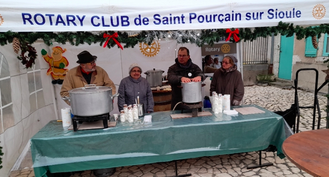 Le club était présent au marché de Noël de Charroux avec son traditionnel stand de vente, de vin, de jus de pommes et de chocolat chauds.En amont nos spécialistes en la matière ont préparé avec soin les boissons et c'est donc avec détermination que les rotariens et les conjoints ont tenu le stand durant les deux journées prévues. Il a fallu faire avec un invité dont nous nous serions bien passé : le froid !